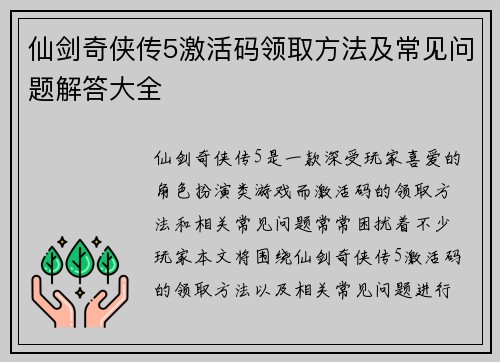 仙剑奇侠传5激活码领取方法及常见问题解答大全